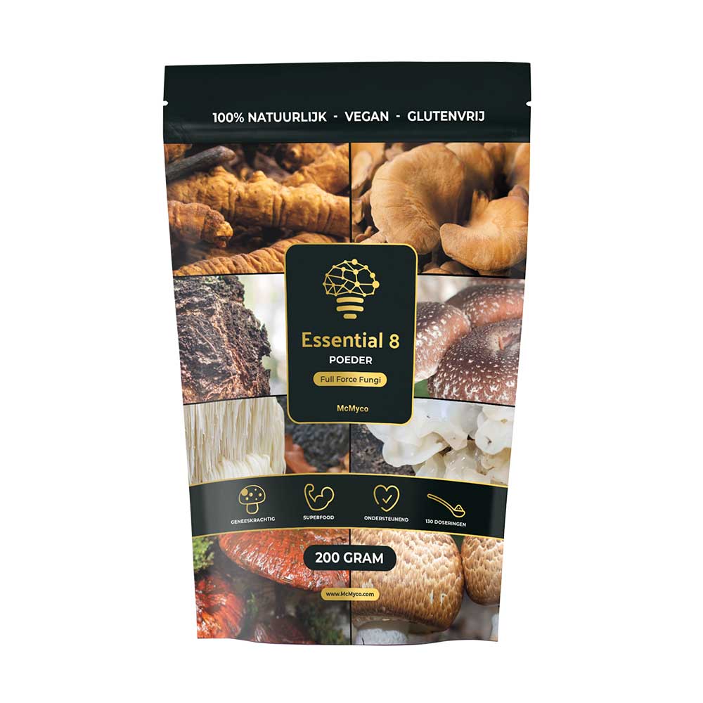 McMyco Essential 8 bevat poeders van 8 van de meest bijzondere paddenstoelen die de natuur te bieden heeft. Deze medicinale paddenstoelen worden traditioneel gezien al eeuwen (soms zelfs duizenden jaren) lang gebruikt voor verschillende doeleinden. En nu, na al die jaren, blijkt dat het enthousiasme van onze voorouders meer dan terecht was. We kunnen simpelweg niet meer om de bijzondere werking van paddenstoelen heen!